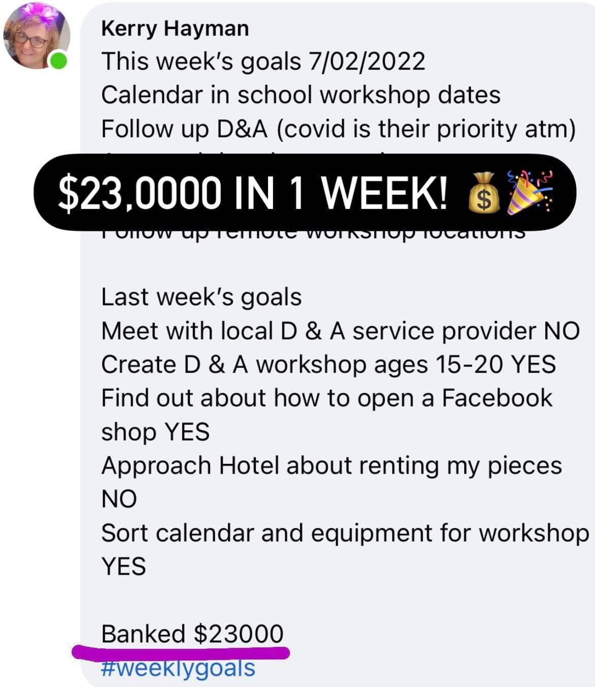 "I have increased my earnings by $500 a week and I am cruising at art school and having a ball. I have so much to be grateful for and I thank Jasmine so much for everything she did for me. It opened my eyes to who I truly am and I am very happy with me.